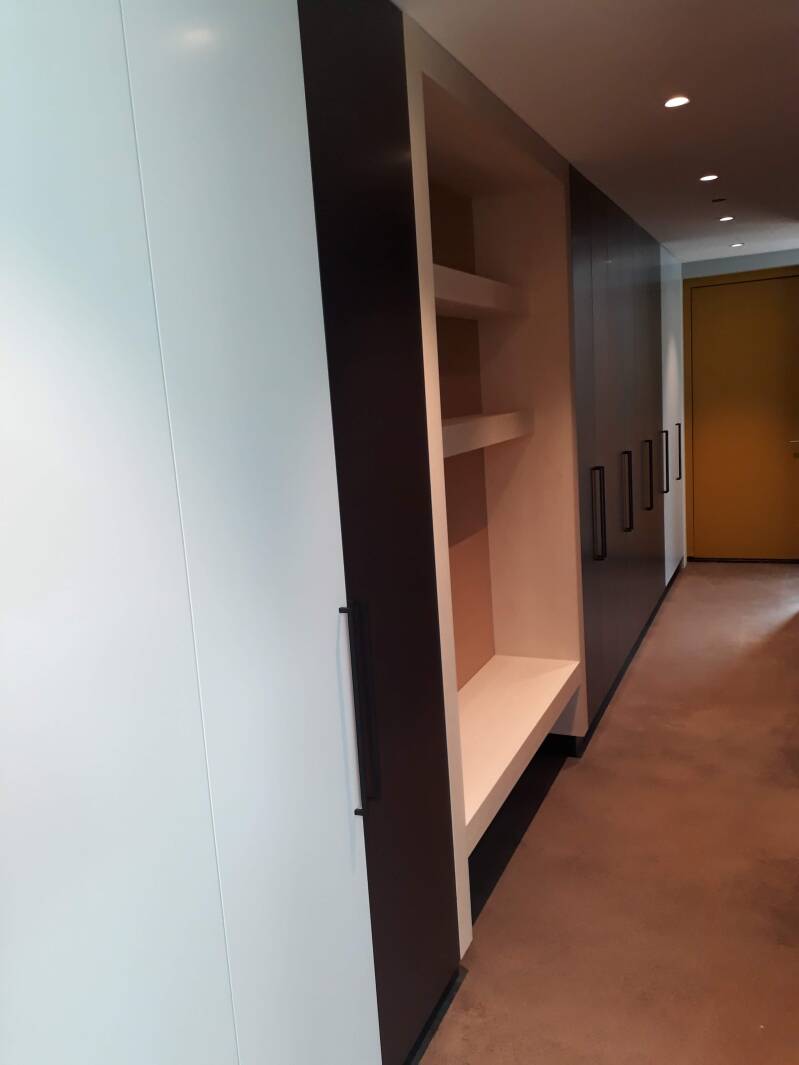 Grote inbouwkast met schuifdeuren en omlijsting.
