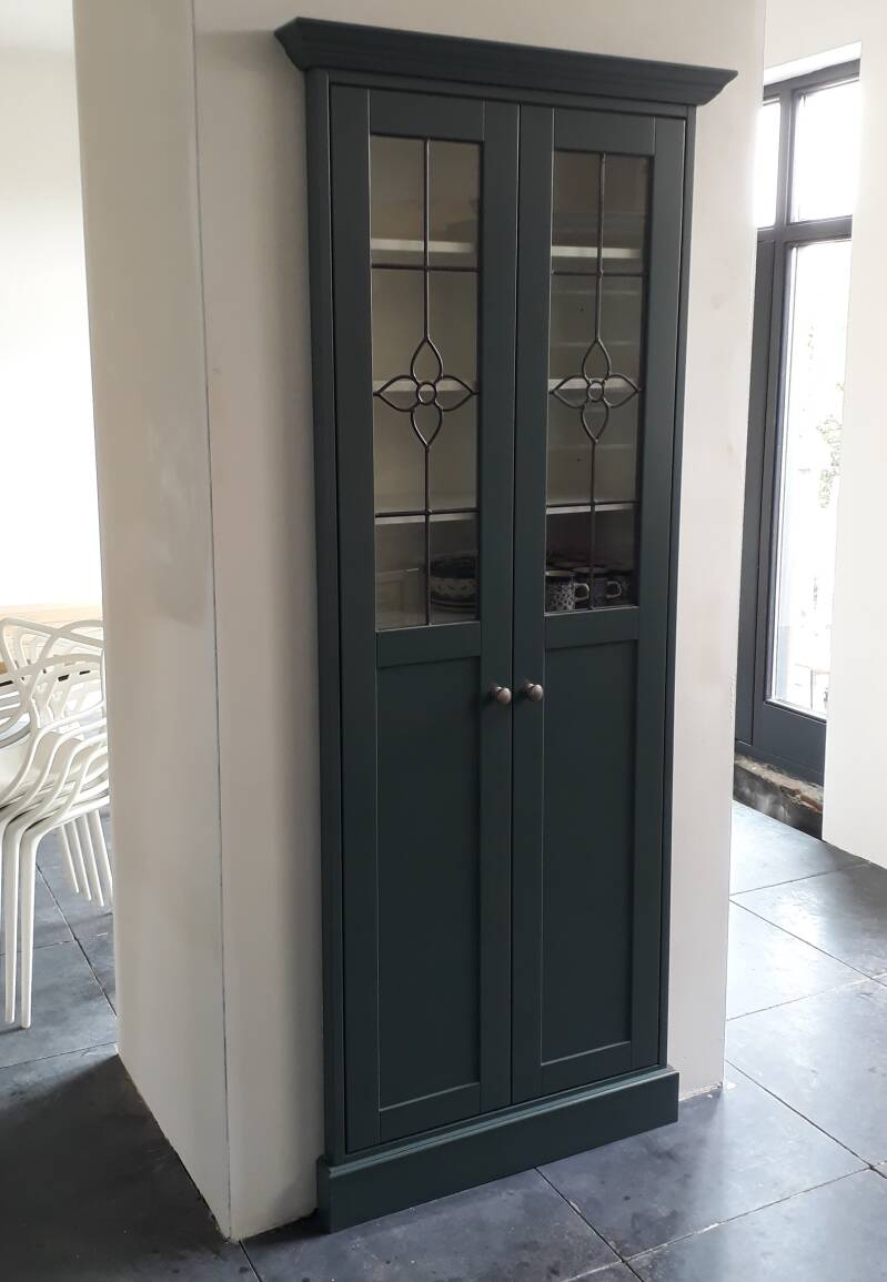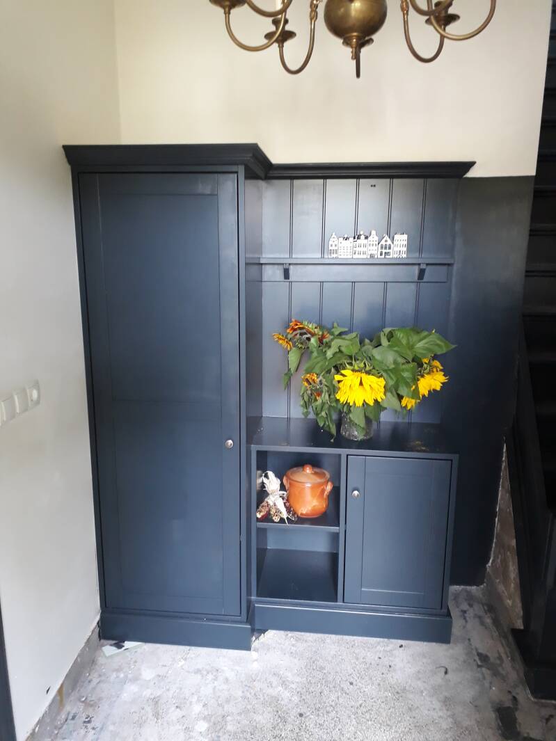 Gelakte entreekast en ingebouwde servieskast, klassieke stijl in een oud herenhuis.
