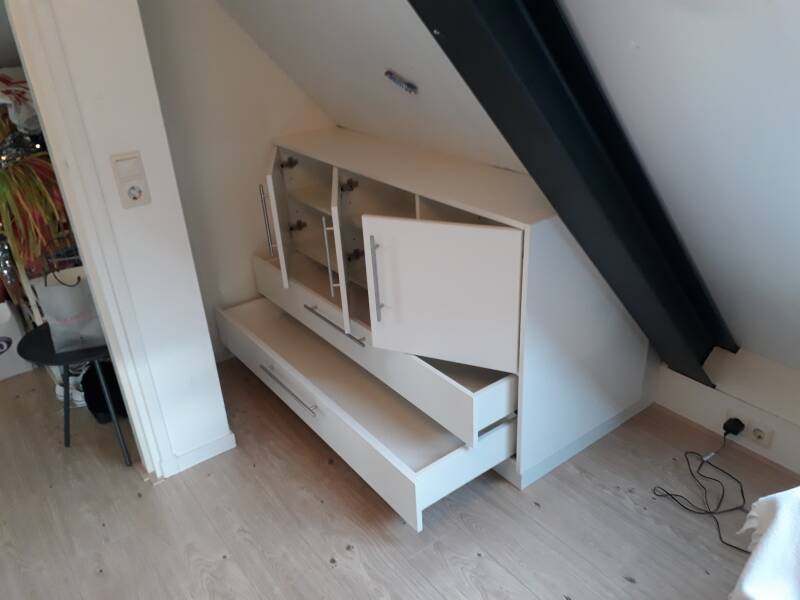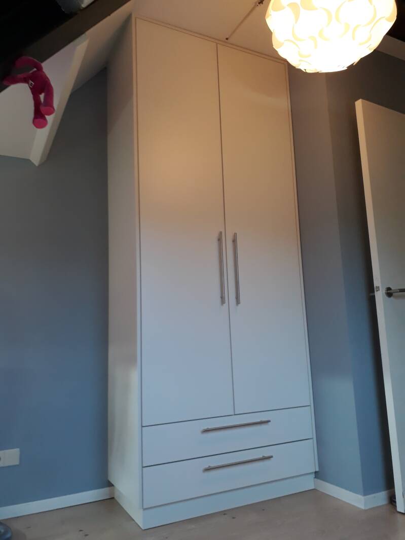 Kledingkast met een garderobelift om de hoogte maximaal te benutten.